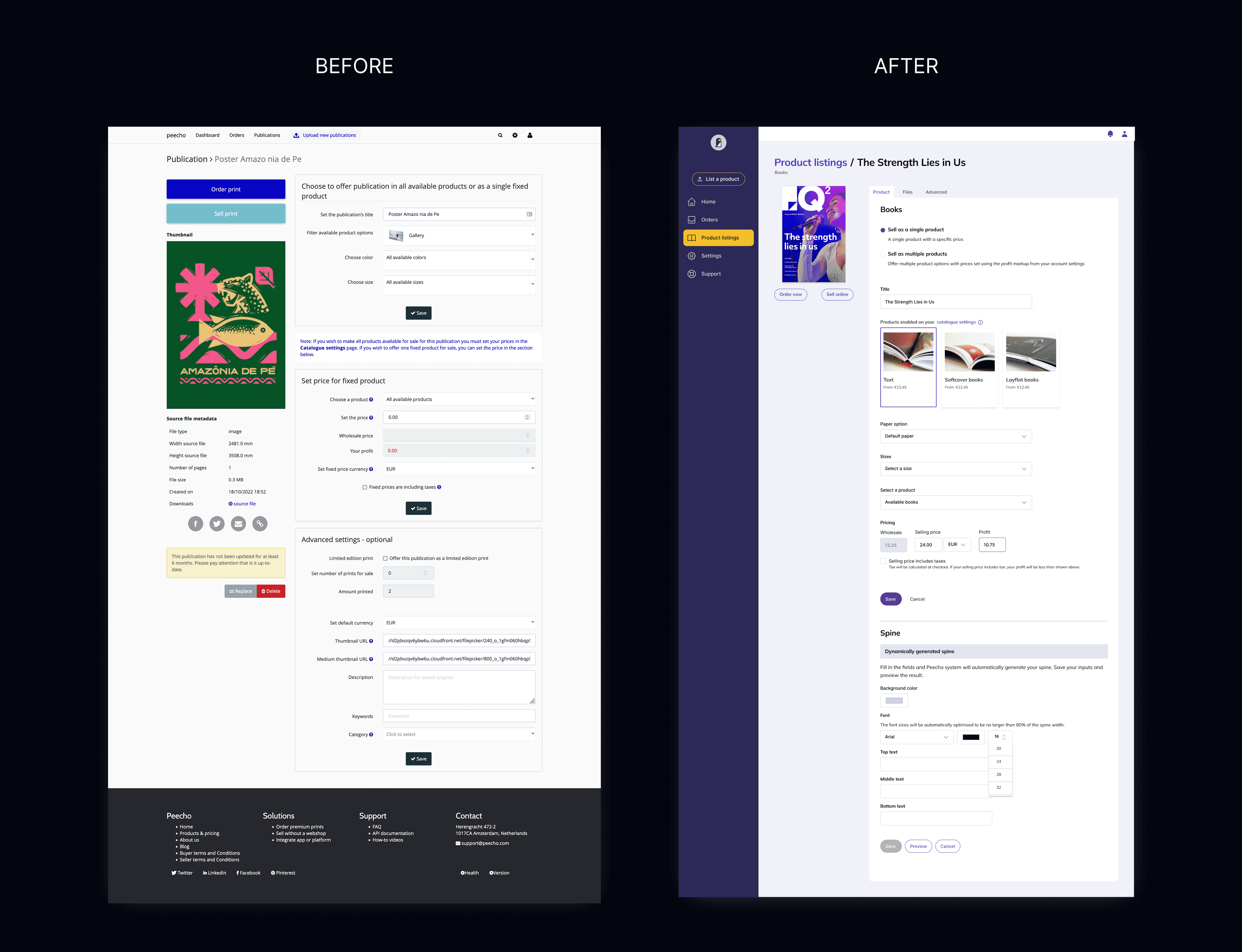 Peecho’s platform UI had never been updated. It still had that 2005 look and feel, but more importantly, there was no clear flow. Merchants had to figure out on their own how to create a new Publication (a legacy term from when Peecho focused on self-publishers) and start selling. The lack of direction made a simple task unnecessarily complex.
